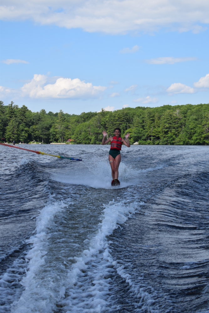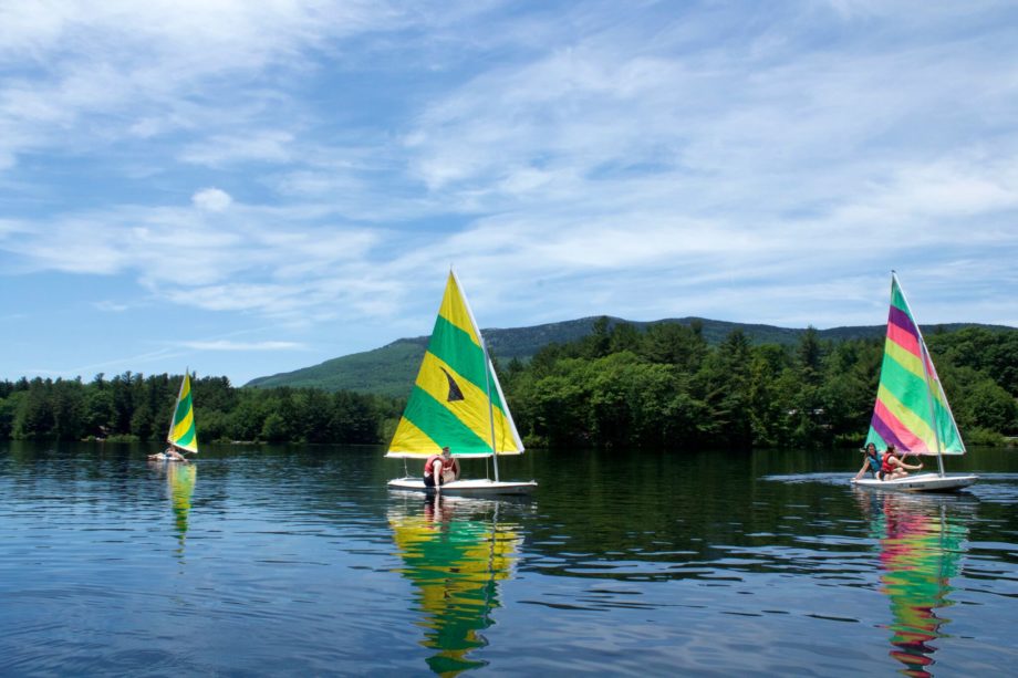Every day our 3,000 feet of waterfront is alive with activity. No matter where you are on Thorndike Pond’s pristine waters, there is a full view of majestic Mount Monadnock. The sailboats, windsurfers, and kayakers explore the pond and shoreline while water skiers and wake boarders take off behind three ski boats. All campers are taught the swimming skills outlined by the American Red Cross (ARC), there are certified lifeguards in each instructional area on the waterfront, and aquatic specialists are hired to improve camper’s skills, achieve success, and develop confidence. The breathtaking views and camper’s excitement keep the Wa-Klo waterfront pumped with joy!
